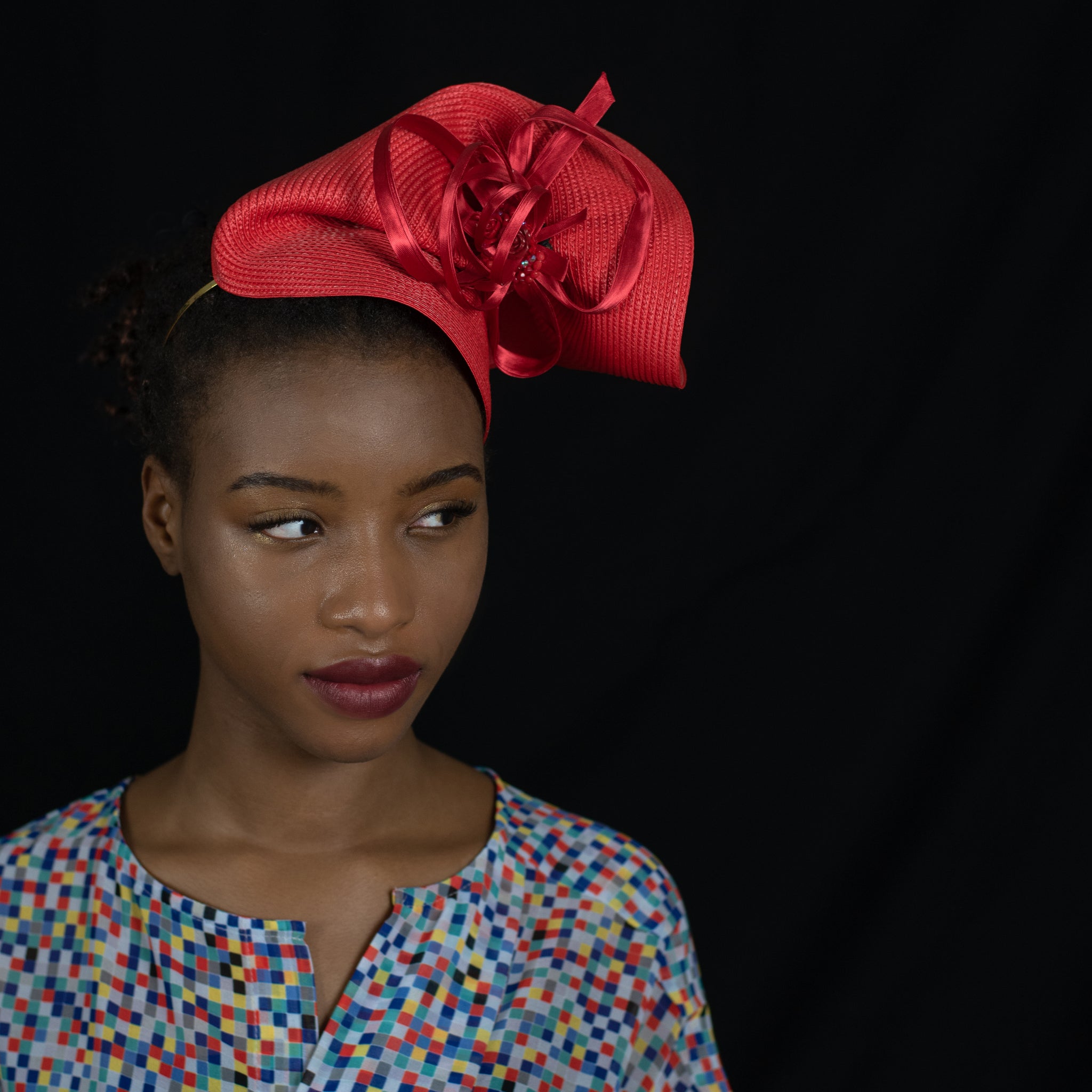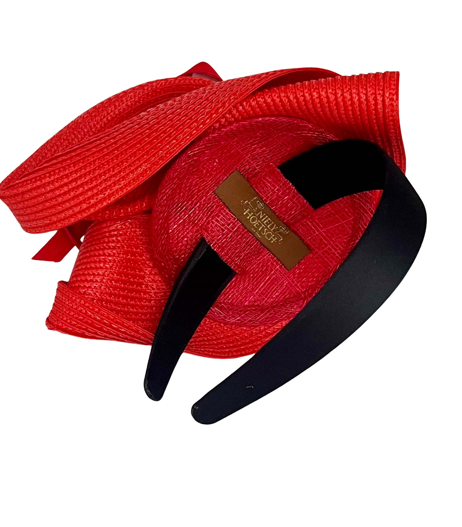 From our Impromptu Collection, Rubra is a fearless celebration of form, fire, and feminine power. Sculpted by hand in our Viennese atelier on a 33 cm base, this one-of-a-kind headpiece commands attention with its bold color and striking silhouette.