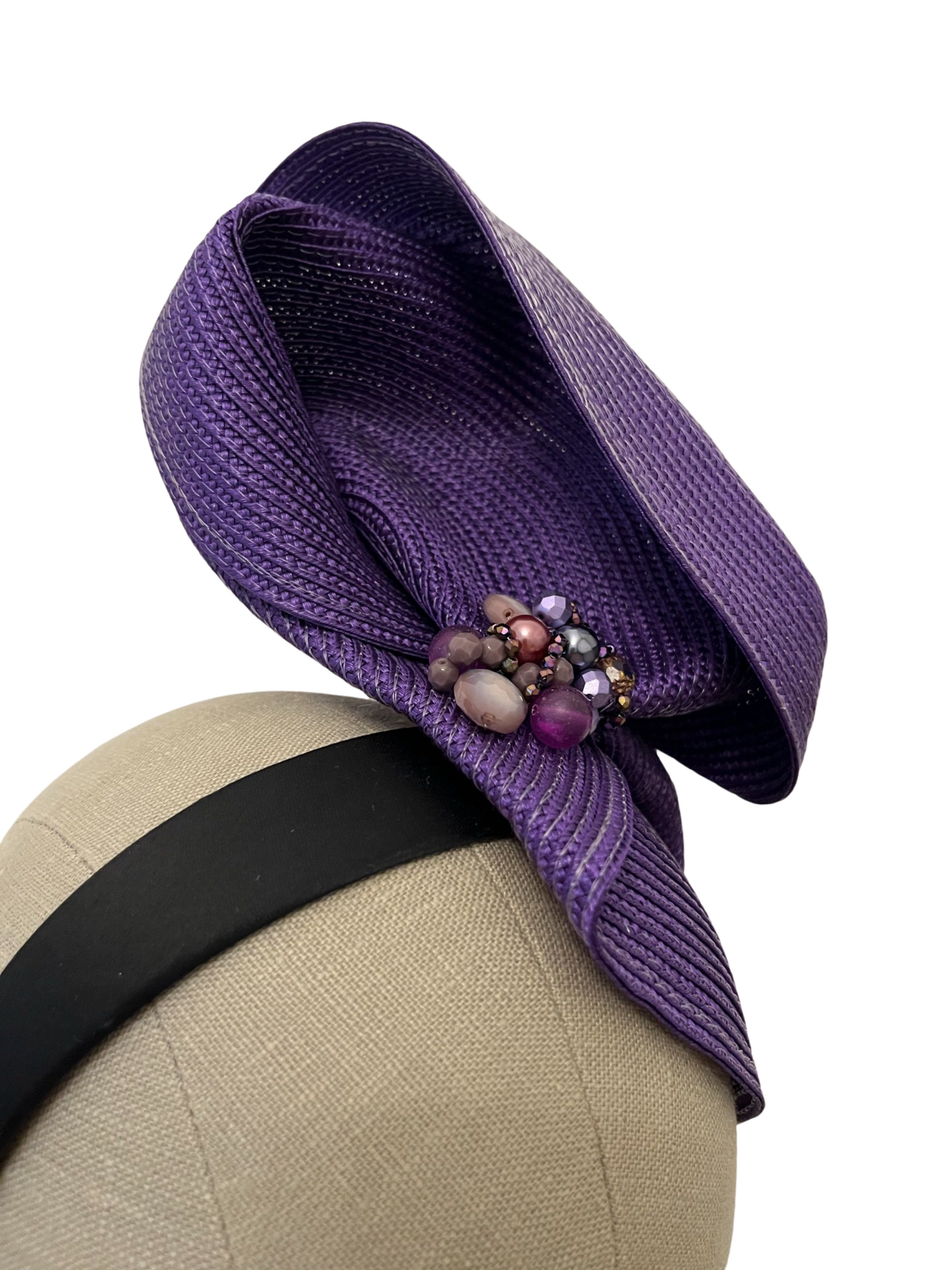 From our Impromptu Collection, Violetta is a radiant burst of color, crafted for those who crave statement pieces with soul. Freely shaped by hand in our Viennese atelier, this sculptural headpiece is a celebration of lavender tones and luminous texture.