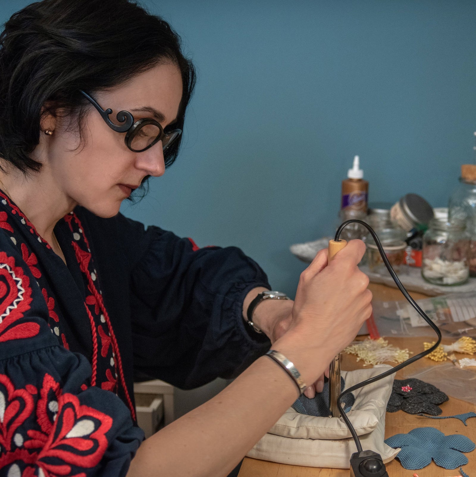 Our headpieces are crafted using fabrics sourced with great attention to their beauty and origins. We not only buy new materials but also cherish the opportunity to upcycle textiles from vintage second-hand clothing and use remnants from designer friends who share our love for exquisite fabrics. As a result, many of our headpieces come with their own unique stories, weaving together elements of the past and present to create truly one-of-a-kind pieces.