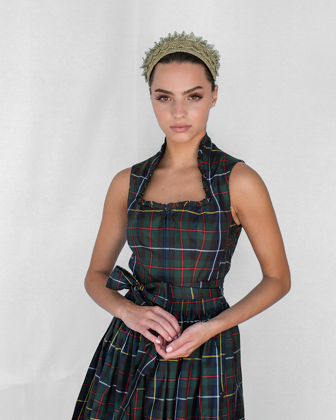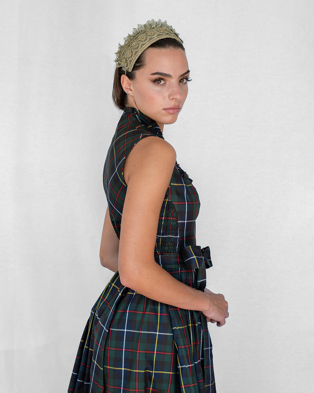 Wear it as a soft crown or a bold gesture. Whether paired with crisp shirting, silken eveningwear, or a bridal silhouette, this Goldreifen transforms the ordinary into the artful — an accessory with timeless range and quiet drama.