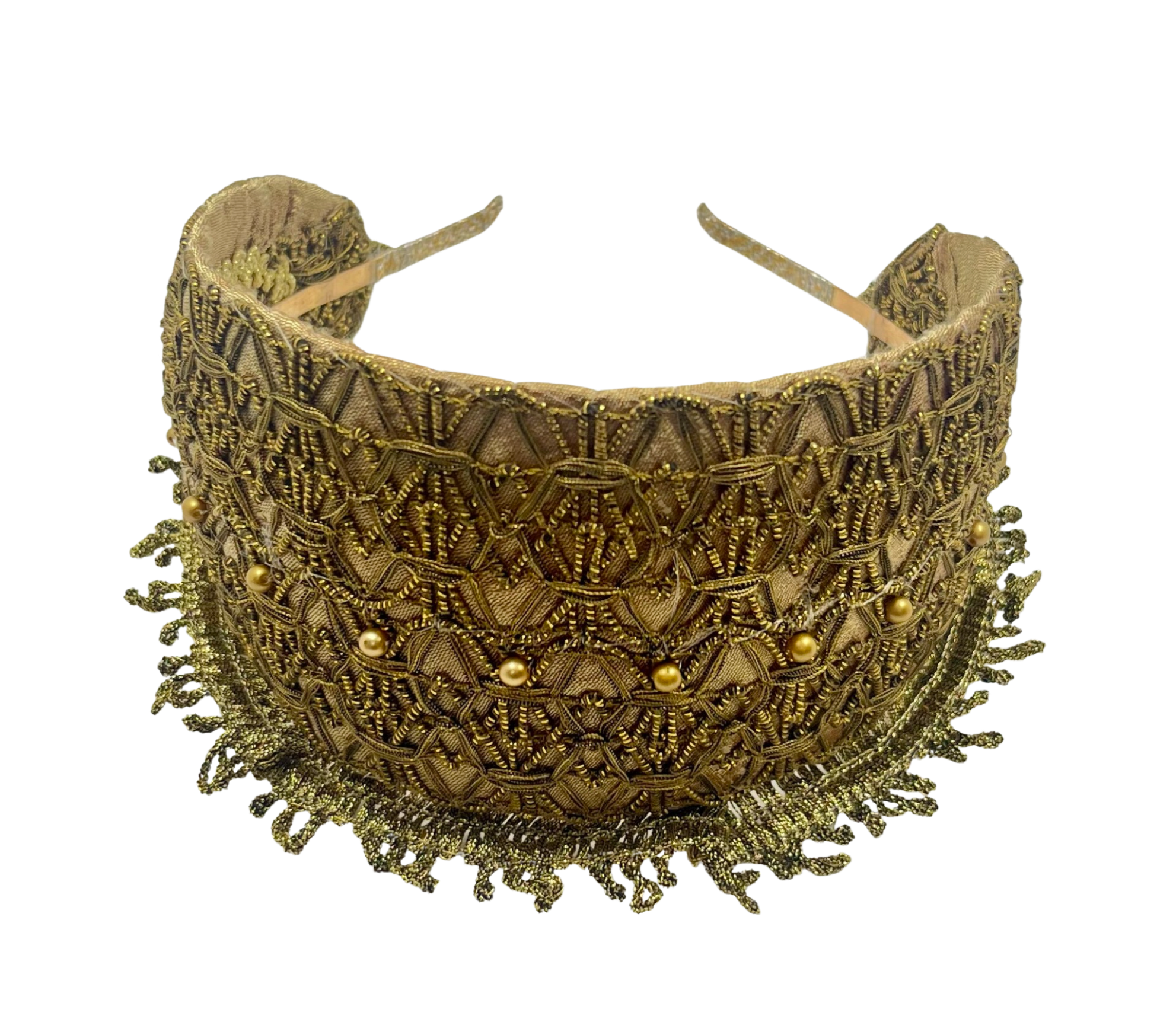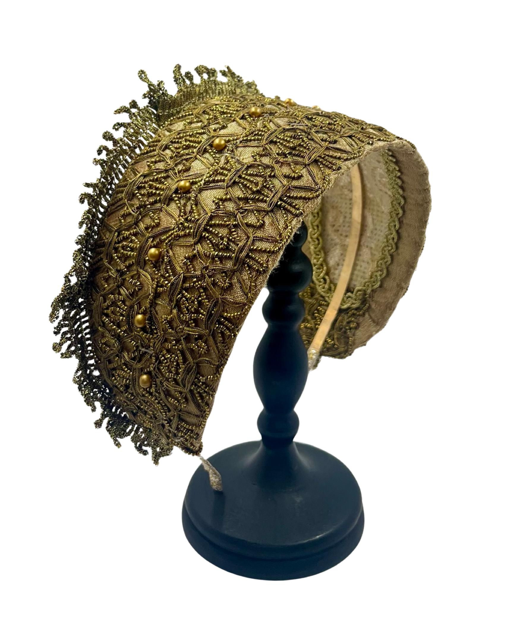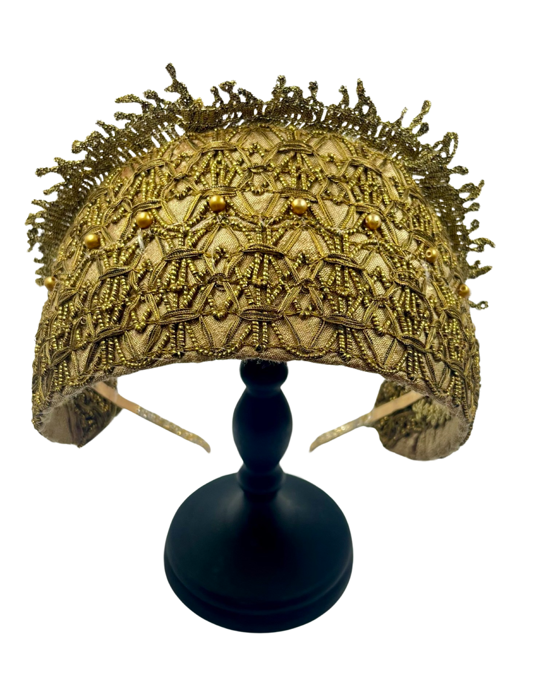 A delicate interplay of structure and softness. This Pure Gold Goldreifen is constructed on our signature, custom-made base, secured to a thin metal headband for a comfortably secure and pinch-free fit. It is lined in caramel gold silk dupion — warm, luminous, and timeless.